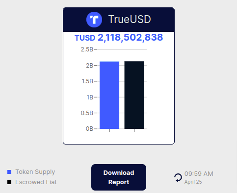 TUSD is the only USD stablecoin that provides real-time attestations on its reserves and secures user minting through Chainlink’s Proof of Reserve. As of April 25th, the TUSD real-time audit report shows:
